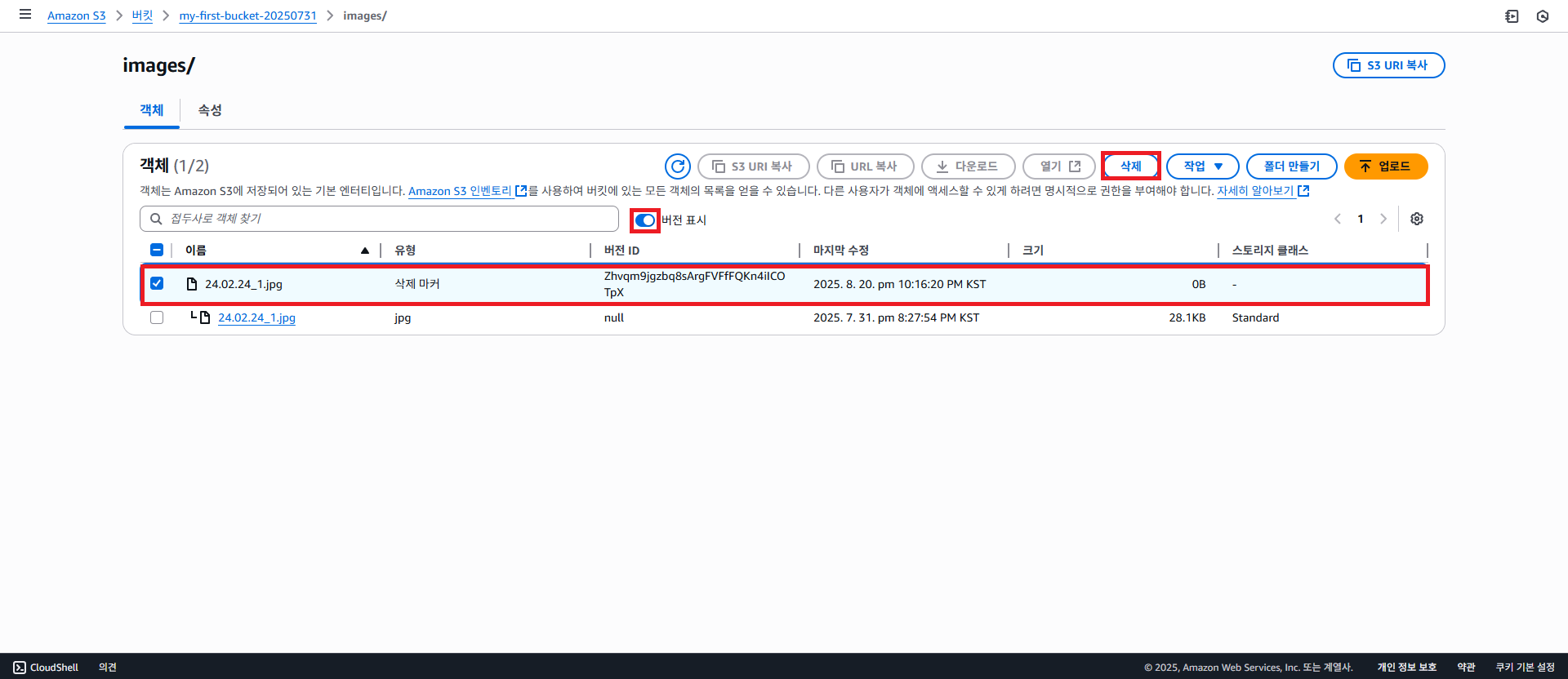 이번에는 객체를 "버전 ID"가 아닌 단순 삭제를 해보도록 하겠습니다.